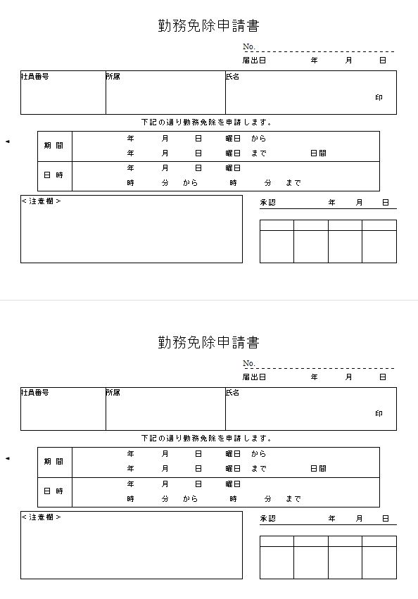 勤務免除申請書