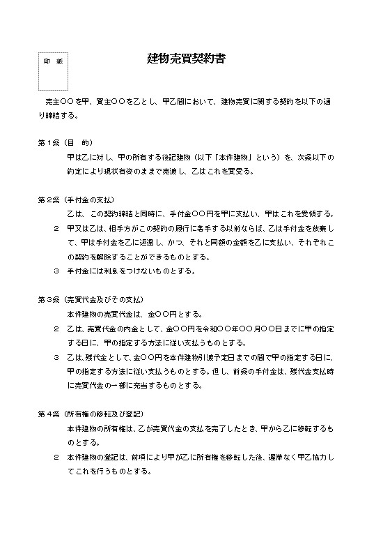 建物売買契約書の画像