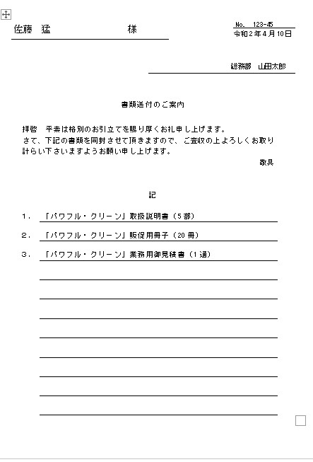 さて、下記の書類を同封させて頂きますので、ご査収の上よろしくお取り